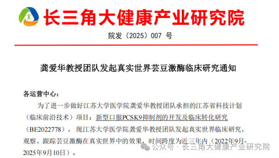 江苏大学医学院龚爱华教授团队牵头的科研项目,凭借其对芸豆激酶在心脑血管健康方面的研究积累,成功脱颖而出,获批江苏省科技计划临床前沿技术项项目“新型口服 PCSK9 抑制剂的开发及临床转化研究”(项目编号:BE2022778) 。