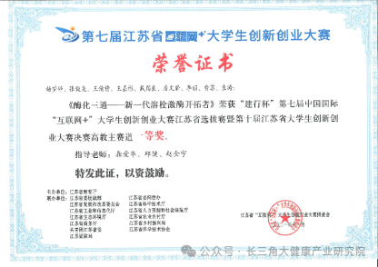 第七届江苏省大学生创新创业大赛决赛高教主赛道一等奖